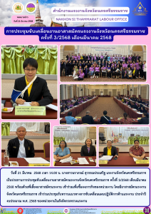 วันที่ 21 มีนาคม 2568 เวลา 14.00 น. นางสาวนราภรณ์ สุวรรณประเสริฐ แรงงานจังหวัดนครศรีธรรมราช เป็นประธานการประชุมขับเคลื่อนงานอาสาสมัครแรงงานจังหวัดนครศรีธรรมราช ครั้งที่ 3/2568 เดือนมีนาคม 2568 พร้อมด้วยพี่เลี้ยงอาสาสมัครแรงงาน เข้าร่วมเพื่อชี้แจงภารกิจของหน่วยงาน โดยมีอาสาสมัครแรงงานจังหวัดนครศรีธรรมราช เข้าร่วมประชุมรับทราบแนวทางการขับเคลื่อนแผนปฏิบัติการด้านแรงงาน ประจำปีงบประมาณ พ.ศ. 2568 ของหน่วยงานในสังกัดกระทรวงแรงงาน