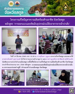สรจ.สตูล ลงพื้นที่ปิดโครงการแก้ไขปัญหาความเดือดร้อนด้านอาชีพ จังหวัดสตูล หลักสูตร ‘การออกแบบและตัดเย็บอุปกรณ์บนโต๊ะอาหารจากผ้าปาเต๊ะ’