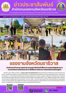 แรงงานจังหวัดนราธิวาส ร่วมกิจกรรมเข้าแถวเคารพธงชาติ และพบปะกำชับเจ้าหน้าที่รักษาความปลอดภัยศูนย์ราชการกระทรวงแรงงานจังหวัดนราธิวาส เพื่อชี้แจงการรักษาความปลอดภัยรอบบริเวณศูนย์ฯ
