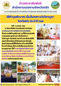 สรจ.ตรัง ร่วมพิธีทำบุญตักบาตร เนื่องในเทศกาลวันวิสาขบูชา จังหวัดตรัง ประจำปี 2568