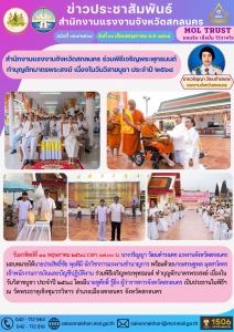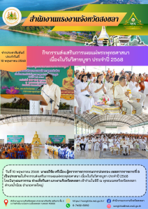 สำนักงานแรงงานจังหวัดสกลนคร ร่วมพิธีเจริญพระพุทธมนต์ ทำบุญตักบาตรพระสงฆ์ เนื่องในวันวิสาขบูชา ประจำปี 2568