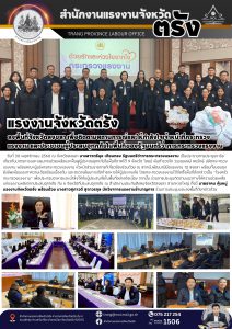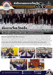 แรงงานจังหวัดตรัง ร่วมการประชุมติดตามสถานการณ์อุทกภัยในพื้นที่จังหวัดสงขลาและการให้ความช่วยเหลือผู้ประสบอุทกภัยภาคใต้ของหน่วยงานสังกัดกระทรวงแรงงาน
