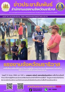 แรงงานจังหวัดนราธิวาส ลงพื้นที่ตรวจเยี่ยมให้คำแนะนำในการปฏิบัติงานและประกอบอาชีพแก่แรงงานต่างด้าว ที่เข้าทำงานในพื้นที่อำเภอเมืองนราธิวาส