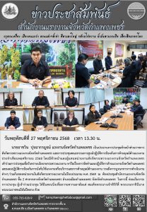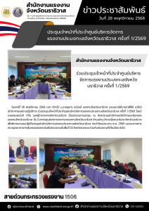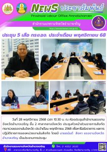 สำนักงานแรงงานจังหวัดกำแพงเพชร จัดประชุมสำนักงานประจำเดือนพฤศจิกายน พ.ศ. 2568 ครั้งที่ 2/2569