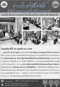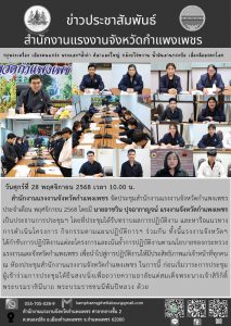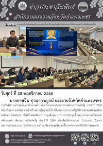 สำนักงานแรงงานจังหวัดกำแพงเพชร รายงานผลการปฏิบัติงานด้านสิทธิประโยชน์แรงงานที่เคยไปทำงานต่างประเทศ (ประจำเดือนพฤศจิกายน 2568)