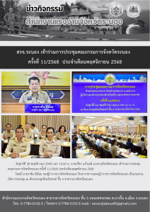 สรจ.ระนอง เข้าร่วมการประชุมคณะกรมการจังหวัดระนอง ครั้งที่ 11/2568 ประจำเดือนพฤศจิกายน 2568