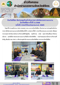 สำนักงานแรงงานจังหวัดกำแพงเพชร จัดประชุมหัวหน้าส่วนราชการสังกัดกระทรวงแรงงานจังหวัดกำแพงเพชร และการประชุมคณะกรรมการศูนย์ปฏิบัติการป้องกันการค้ามนุษย์ด้านแรงงาน ประจำเดือนพฤศจิกายน 2568