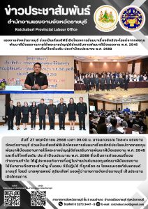 แรงงานจังหวัดราชบุรี – ร่วมเป็นเกียรติพิธีเปิดโครงการสัมมนาเรื่องสิทธิประโยชน์จากกองทุนพัฒนาฝีมือแรงานภายใต้พระราชบัญญัติส่งเสริมการพัฒนาฝีมือแรงงาน พ.ศ. 2545 และที่แก้ไขเพิ่มเติม ประจำปีงบประมาณ พ.ศ. 2569