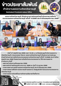 แรงงานจังหวัดราชบุรี – เป็นประธานการประชุมหัวหน้าส่วนราชการสังกัด กระทรวงแรงงานจังหวัดราชบุรี ครั้งที่ 11/2568 ประจำเดือนพฤศจิกายน 2568
