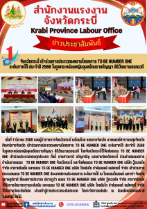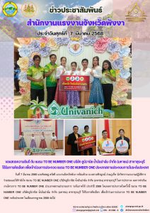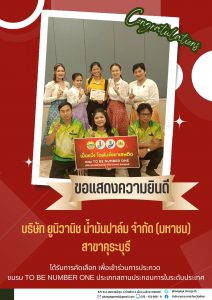 สรจ.พังงา ขอแสดงความยินดี กับ ชมรม TO BE NUMBER ONE บริษัท ยูนิวานิช น้ำมันปาล์ม จำกัด (มหาชน) สาขาคุระบุรี ได้รับการคัดเลือก เพื่อเข้าร่วมการประกวด ชมรม TO BE NUMBER ONE ประเภทสถานประกอบการในระดับประเทศ