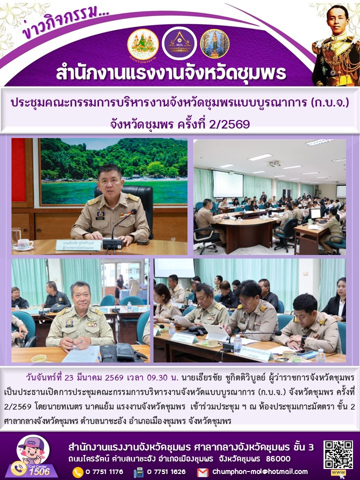 แรงงานจังหวัดชุมพร ร่วมประชุมคณะกรรมการบริหารงานจังหวัดชุมพรแบบบูรณาการ (ก.บ.จ.)จังหวัดชุมพร ครั้งที่ 2/2569