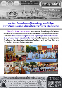 สรจ.ยโสธร กิจกรรมโครงการผู้ว่าฯ พาเติมบุญ หนุนนำวิถีพุทธ ประจำเดือนธันวาคม 2568 เพื่อส่งเสริมคุณธรรมจริยธรรม ผนึกกำลังศรัทธา