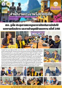 สรจ. ภูเก็ต ประชุมการตรวจบูรณาการป้องกันการบังคับใช้แรงงานหรือบริการ และการค้ามนุษย์ด้านแรงงาน ครั้งที่ 2/68