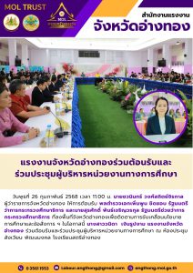 แรงงานจังหวัดอ่างทองร่วมต้อนรับและ ร่วมประชุมผู้บริหารหน่วยงานทางการศึกษา
