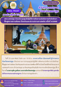 สรจ.นครปฐม ร่วมประชุมรับฟังการนำเสนอผลการลงพื้นที่ตรวจราชการแบบบูรณาการเพื่อแก้ไขปัญหาความเดือนร้อนของประชาชนตามโครงการฝึกอบรมหลักสูตรผู้ตรวจราชการระดับกระทรวง ประจำปีงบประมาณ พ.ศ.2568 ในพื้นที่จังหวัดนครปฐม