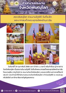 สำนักงานแรงงานจังหวัดมุกดาหาร ร่วมพิธีสวดพระพุทธมนต์และทำบุญตักบาตรถวายพระราชกุศล วันที่ระลึกพระบาทสมเด็จพระพุทธเลิศหล้านภาลัย ประจำปี 2568