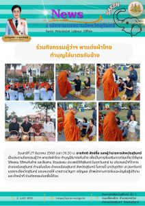 แรงงานจังหวัดสุรินทร์ ร่วมกิจกรรมผู้ว่าฯ พาแต่งผ้าไทย ทำบุญใส่บาตรกับช้าง