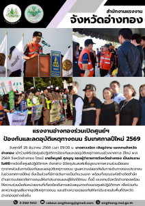 แรงงานอ่างทองร่วมเปิดศูนย์ฯ ป้องกันและลดอุบัติเหตุทางถนน รับเทศกาลปีใหม่ 2569