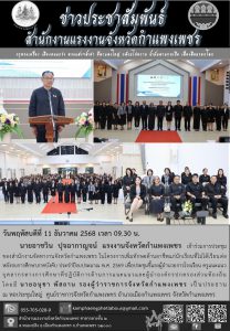 แรงงานจังหวัดกำแพงเพชร ร่วมพิธีตักบาตรข้าวสาร อาหารแห้ง เพื่ออุทิศถวายสมเด็จพระนางเจ้าสิริกิติ์ พระบรมราชินีนาถ พระบรมราชชนนีพันปีหลวง ในวาระครบ 50 วัน (ปัญญาสมวาร)
