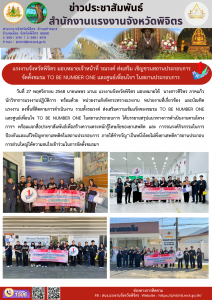 แรงงานจังหวัดพิจิตร มอบหมายเจ้าหน้าที่ รณรงค์ ส่งเสริม เชิญชวนสถานประกอบการ จัดตั้งชมรม TO BE NUMBER ONE และศูนย์เพื่อนใจฯ ในสถานประกอบการ