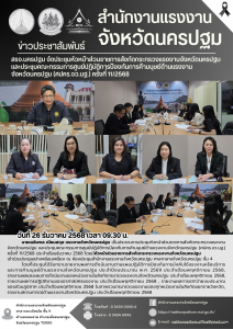 สรจ.นครปฐม จัดประชุมหัวหน้าส่วนราชการสังกัดกระทรวงแรงงานจังหวัดนครปฐม และประชุมคณะกรรมการศูนย์ปฏิบัติการป้องกันการค้ามนุษย์ด้านแรงงานจังหวัดนครปฐม (ศปคร.จว.นฐ.) ครั้งที่ 11/2568