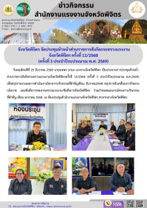 จังหวัดพิจิตร จัดประชุมหัวหน้าส่วนราชการสังกัดกระทรวงแรงงาน จังหวัดพิจิตร ครั้งที่ 12/2568 (ครั้งที่ 3 ประจำปีงบประมาณ พ.ศ. 2569)