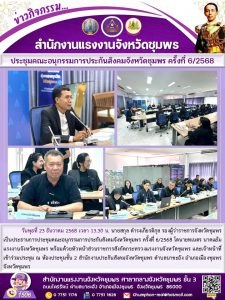 แรงงานจังหวัดชุมพร พร้อมด้วยหัวหน้าส่วนราชการสังกัดกระทรวงแรงงาน และเจ้าหน้าที่ ประชุมคณะอนุกรรมการประกันสังคมจังหวัดชุมพร ครั้งที่ 6/2568
