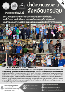 สรจ.นครปฐม บูรณาการร่วมกับอาสาสมัครแรงงาน ลงพื้นที่ประชาสัมพันธ์โครงการอาสาสมัครแรงงานต้านภัยยาเสพติด ประจำปีงบประมาณ พ.ศ. 2569 ในสถานประกอบการที่มีลูกจ้างต่ำกว่า 10 คนลงมา