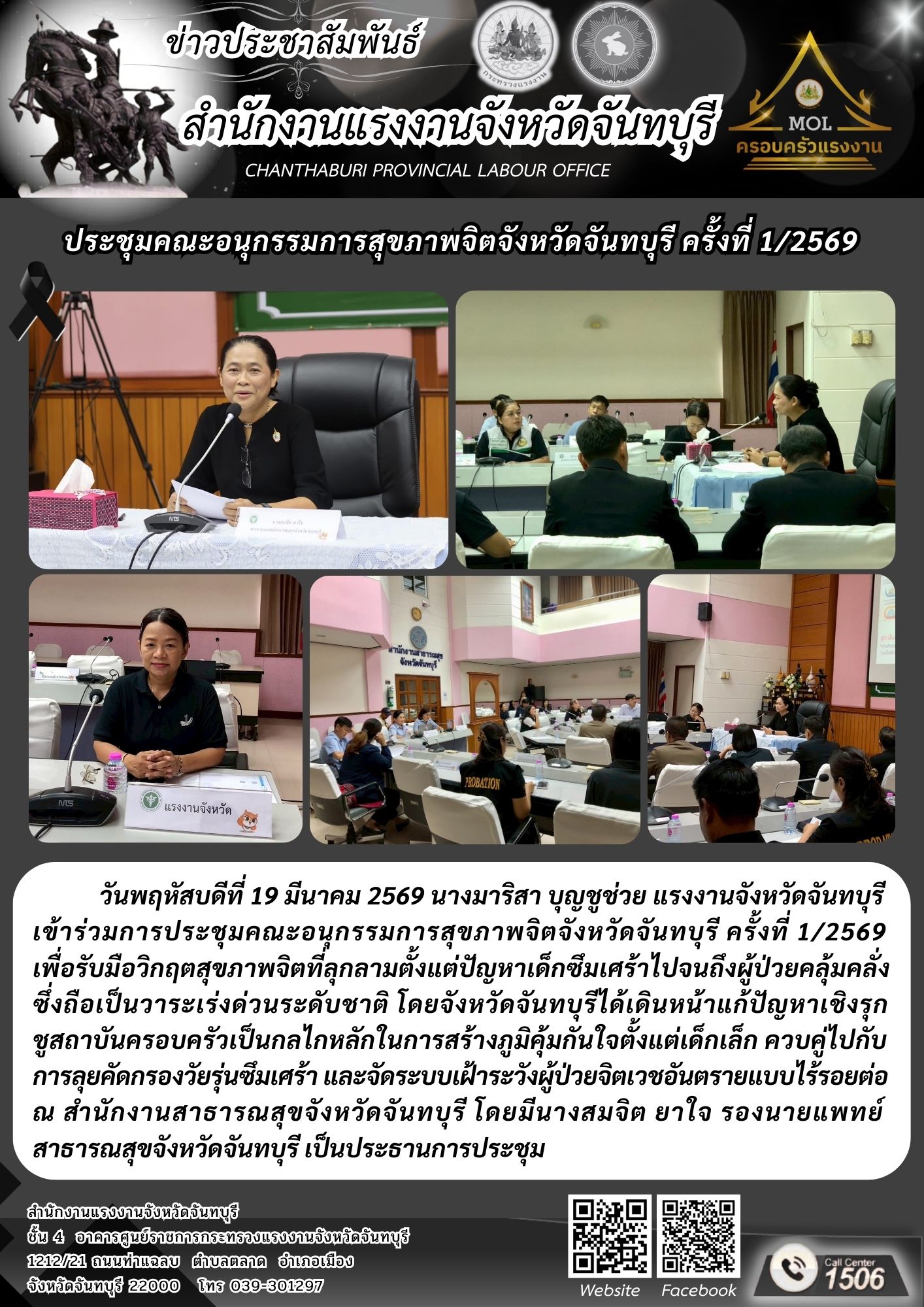 แรงงานจังหวัดจันทบุรี ร่วมการประชุมคณะอนุกรรมการสุขภาพจิตจังหวัดจันทบุรี