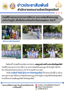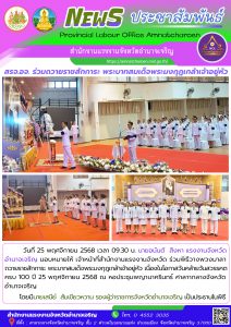 แรงงานจังหวัดพิิจิตร ร่วมพิธีเจริญพระพุทธมนต์และทำบุญตักบาตร กิจกรรมเฉลิมพระเกียรติ และถวายพระราชกุศล ในโอกาสครบรอบ “100 ปี มหาธีรราชานุสรณ์” และ “100 ปี มหาธีรราชธิดา”
