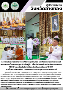 แรงงานจังหวัดอ่างทองร่วมพิธีทำบุญตักบาตร และกิจกรรมเฉลิมพระเกียรติพระบาทสมเด็จพระมงกุฎเกล้าเจ้าอยู่หัว เนื่องในโอกาสวันคล้ายวันสวรรคตครบ 100 ปี และเนื่องในโอกาสวันคล้ายวันประสูติครบ 100 ปี สมเด็จพระเจ้าภคินีเธอ เจ้าฟ้าเพชรรัตนราชสุดา สิริโสภาพัณณวดี