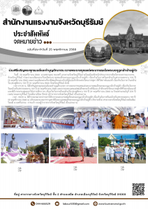 แรงงานจังหวัดบุรีรัมย์ ร่วมพิธีเจริญพระพุทธมนต์และทำบุญตักบาตร ถวายพระราชกุศลแด่พระบาทสมเด็จพระมงกุฎเกล้าเจ้าอยู่หัว