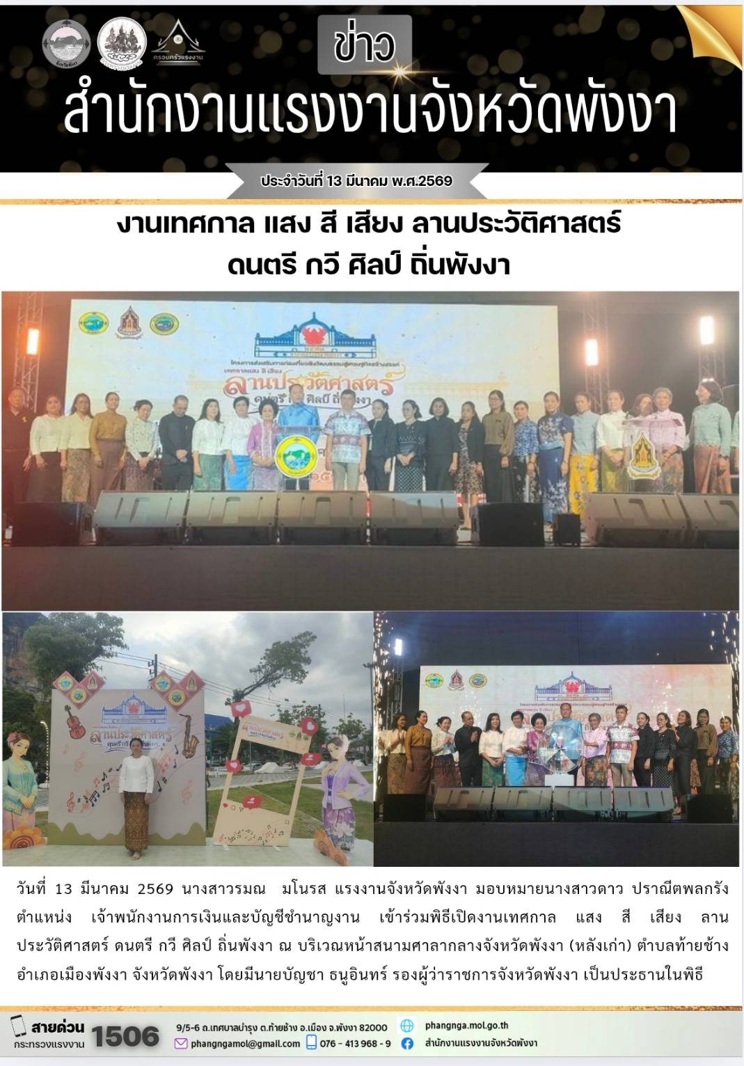 สรจ.พังงา ร่วมงานเทศกาล แสง สี เสียง ลานประวัติศาสตร์ ดนตรี กวี ศิลป์ ถิ่นพังงา