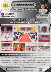 แรงงานจังหวัดอุบลราชธานี พร้อมด้วยเจ้าหน้าที่สำนักงานแรงงานจังหวัดอุบลราชธานี เข้าร่วมพิธีวางพวงมาลาถวายราชสักการะ พระบาทสมเด็จพระมงกุฏเกล้าเจ้าอยู่หัว