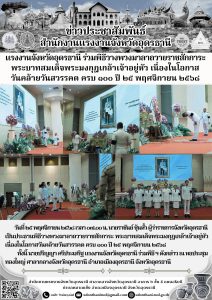แรงงานจังหวัดสุรินทร์ ร่วมพิธีบำเพ็ญกุศล เพื่ออุทิศถวายพระราชกุศล แด่สมเด็จพระนางเจ้าสิริกิติ์ พระบรมราชินีนาถ พระบรมราชชนนีพันปีหลวง