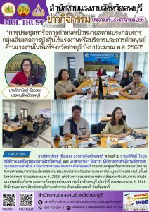 การประชุมหารือการกำหนดเป้าหมายสถานประกอบการ กลุ่มเสี่ยงต่อการบังคับใช้แรงงานหรือบริการและการค้ามนุษย์ ด้านแรงงานในพื้นที่จังหวัดลพบุรี ปีงบประมาณ พ.ศ. 2568