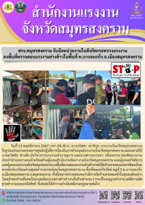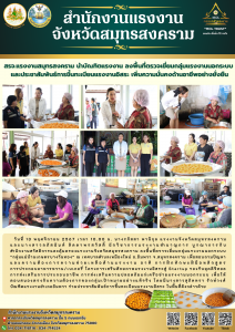 สรจ.แรงงานสมุทรสงคราม นำบัณฑิตแรงงาน ลงพื้นที่ตรวจเยี่ยมกลุ่มแรงงานนอกระบบ และประชาสัมพันธ์การขึ้นทะเบียนแรงงานอิสระ เพิ่มความมั่นคงด้านอาชีพอย่างยั่งยืน