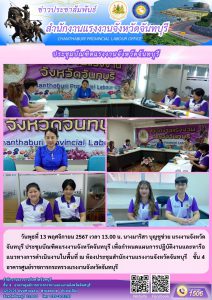 นางมาริสา บุญชูช่วย แรงงานจังหวัดจันทบุรี ประชุมบัณฑิตแรงงานจังหวัดจันทบุรี เพื่อกำหนดแผนการปฏิบัติงานและหารือ แนวทางการดำเนินงานในพื้นที่