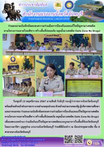 นางมาริสา บุญชูช่วย แรงงานจังหวัดจันทบุรี ร่วมพิธีลงนามบันทึกข้อตกลงความร่วมมือการป้องกันและแก้ไขปัญหายาเสพติด ตามโครงการมหาดไทยสีขาว สร้างพื้นที่ปลอดภัย หยุดยั้งยาเสพติด (Safe Zone No Drugs)