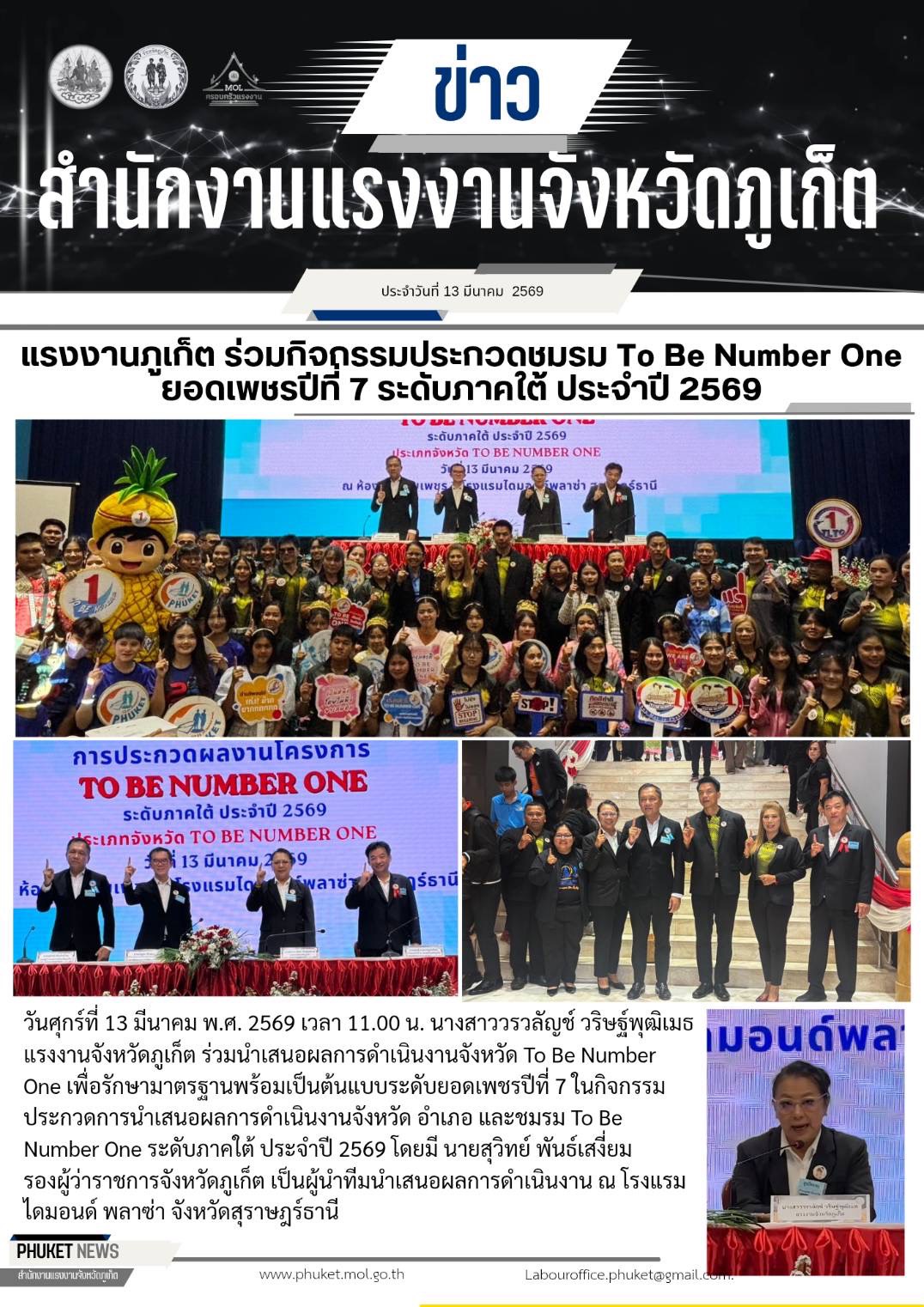 แรงงานภูเก็ต ร่วมกิจกรรมประกวดชมรม To Be Number One ยอดเพชรปีที่ 7 ระดับภาคใต้ ประจำปี 2569