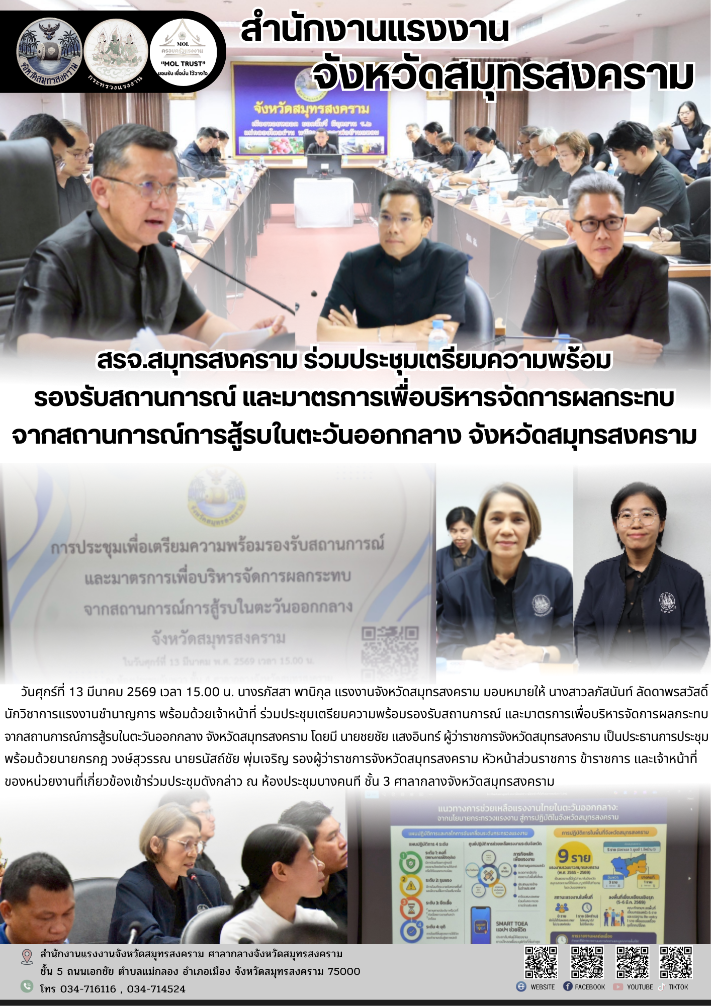 สรจ.สมุทรสงคราม ร่วมประชุมเตรียมความพร้อม รองรับสถานการณ์ และมาตรการเพื่อบริหารจัดการผลกระทบ จากสถานการณ์การสู้รบในตะวันออกกลาง จังหวัดสมุทรสงคราม