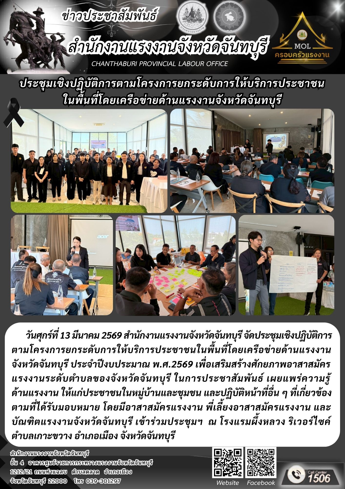สรจ.จันทบุรี จัดประชุมเชิงปฏิบัติการตามโครงการยกระดับการให้บริการประชาชนในพื้นที่โดยเครือข่ายด้านแรงงานจังหวัดจันทบุรี