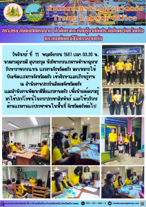บัณฑิตแรงงานจังหวัดตรัง ร่วมศึกษาและเรียนรู้งาน ณ สำนักงานประกันสังคมจังหวัดตรังและสำนักงานพัฒนาฝีมือแรงงานตรัง