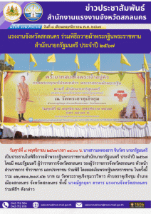 สรจ.สกลนคร ร่วมพิธีถวายผ้าพระกฐินพระราชทาน สำนักนายกรัฐมนตรี ประจำปี 2567
