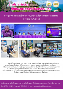 สรจ.ระนองร่วมประชุมงานตามแผนโครงการขับเคลื่อนนโยบายกระทรวงแรงงาน ประจำปี พ.ศ. 2568 ไปสู่การปฏิบัติที่มีประสิทธิภาพ ภายใต้แนวคิด “MOL TRUST ครอบครัวแรงงาน