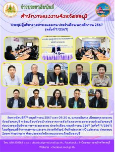สรจ.ชลบุรี ประชุมผู้บริหารกระทรวงแรงงาน ประจำเดือน พฤศจิกายน 2567 (ครั้งที่ 7/2567)