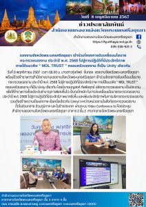 สรจ.พระนครศรีอยุธยา เข้าร่วมโครงการขับเคลื่อนนโยบายกระทรวงแรงงาน ประจำปี พ.ศ. 2568 ไปสู่การปฏิบัติที่มีประสิทธิภาพภายใต้แนวคิด “ MOL TRUST ” ครอบครัวแรงงาน ที่เป็น Unity เดียวกัน
