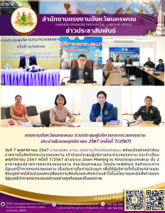 สรจ.นครพนม ร่วมประชุมผู้บริหารกระทรวงแรงงาน ประจำเดือนพฤศจิกายน 2567 (ครั้งที่ 7/2567)