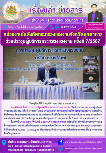 หน่วยงานในสังกัดกระทรวงแรงงานจังหวัดมุกดาหาร ร่วมประชุมผู้บริหารกระทรวงแรงงาน ครั้งที่ 7/2567