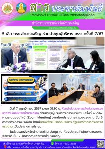 หัวหน้าส่วนราชการสังกัดกระทรวงแรงงานจังหวัดอำนาจเจริญ ร่วมประชุมผู้บริหารกระทรวงแรงงาน ครั้งที่ 7/2567 ผ่านระบบออนไลน์ (Zoom Meetting)